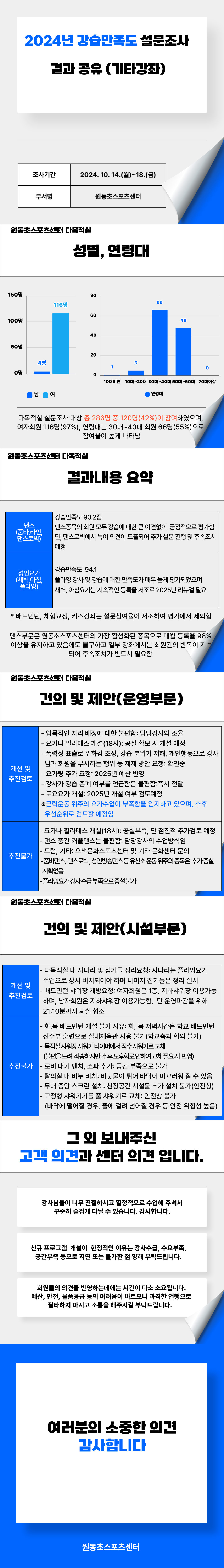 원동초 스포츠센터 2024년 자체 강습만족도 조사 결과 공유(기타강좌)