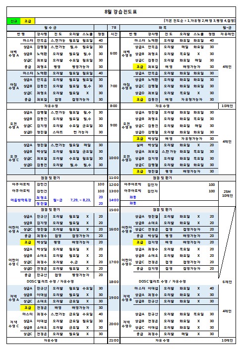 오산스포츠센터 [오산스포츠센터] 8월 강습 진도표 작성자 osansisul03 등록일자 2024년 7월 17일 17시 31분 41초 조회 3,489 8월.jpg [ Size : 157.75KB , Down : 4,862 ] 미리보기 다운로드 목록보기