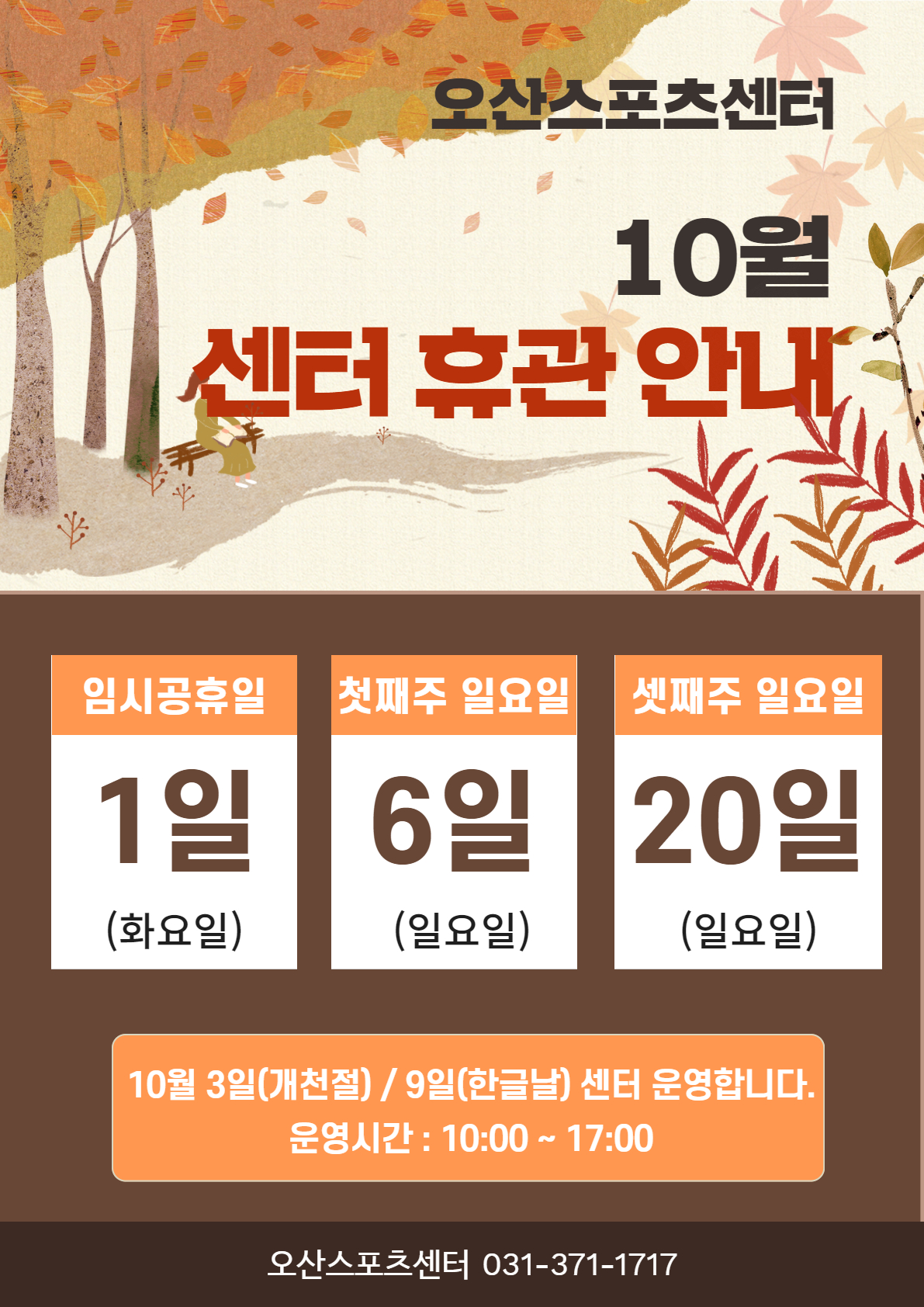 오산스포츠센터 2024년 10월 오산스포츠센터 휴관안내 작성자 osansisul03 등록일자 2024년 10월 4일 17시 2분 47초 조회 1,624 스포츠센터 10월.jpg [ Size : 1.41MB , Down : 2,067 ] 미리보기 다운로드 목록보기