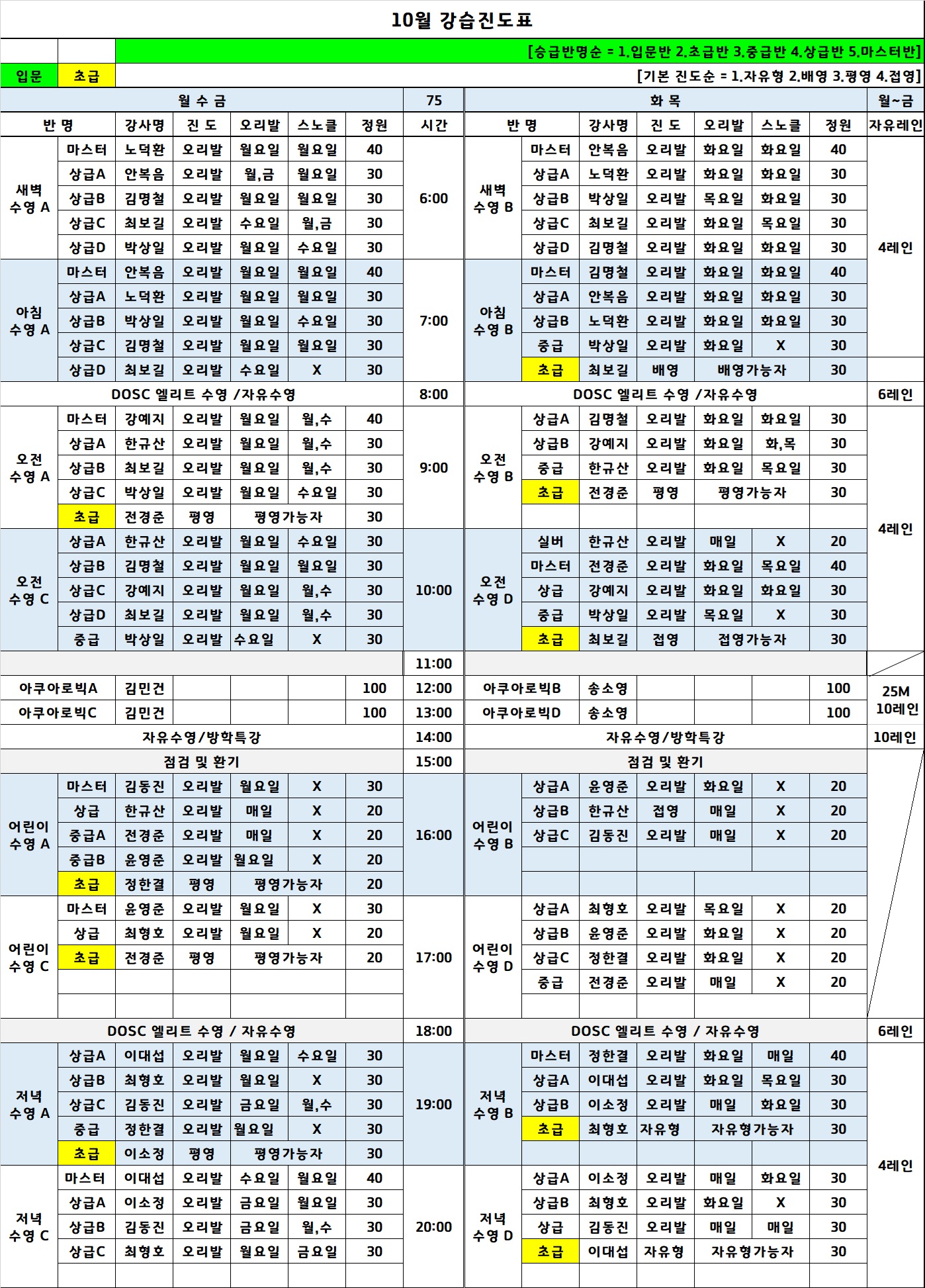 오산스포츠센터 [오산스포츠센터] 10월 강습 진도표(수정) 작성자 osansisul03 등록일자 2025년 9월 23일 16시 53분 33초 조회 1,748 10월 강습진도표(수정).jpg [ Size : 995.61KB , Down : 2,818 ] 미리보기 다운로드 목록보기