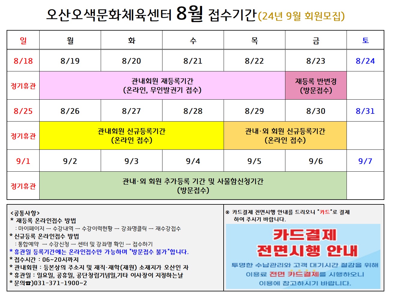 오색문화체육센터 [오색문화] 8월 접수기간(2024. 9월 강좌) 작성자 osansisul04 등록일자 2024년 8월 8일 14시 0분 3초 조회 704 . 2024.8월접수기간(9월 강좌).jpg [ Size : 317.5KB , Down : 1,292 ] 미리보기 다운로드 목록보기