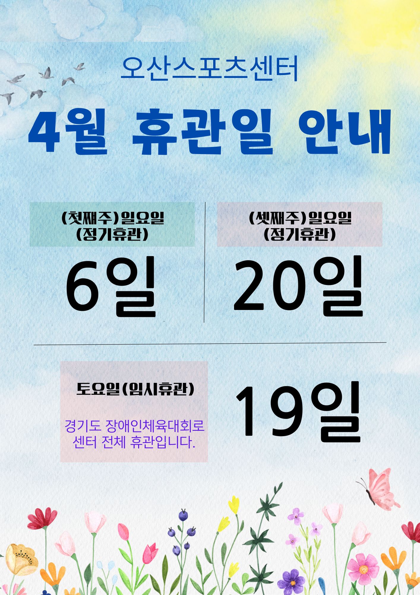 오산스포츠센터 오산스포츠센터 2025년 4월 휴관일 안내 작성자 osansisul03 등록일자 2025년 3월 17일 10시 4분 53초 조회 2,299 4월 휴관일.jpg [ Size : 434.52KB , Down : 2,804 ] 미리보기 다운로드 목록보기