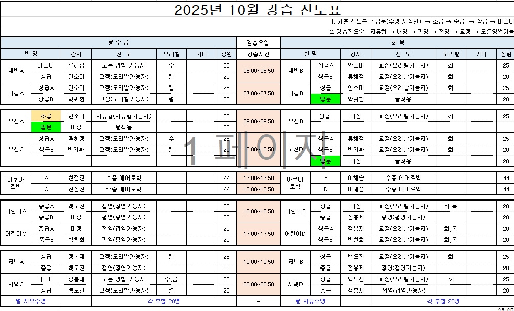 원동초 스포츠센터 [원동]10월 강습진도표 작성자 osansisul02 등록일자 2025년 9월 15일 8시 49분 48초 조회 906 10월강습진도표2.jpg [ Size : 276.18KB , Down : 1,598 ] 미리보기 다운로드 목록보기