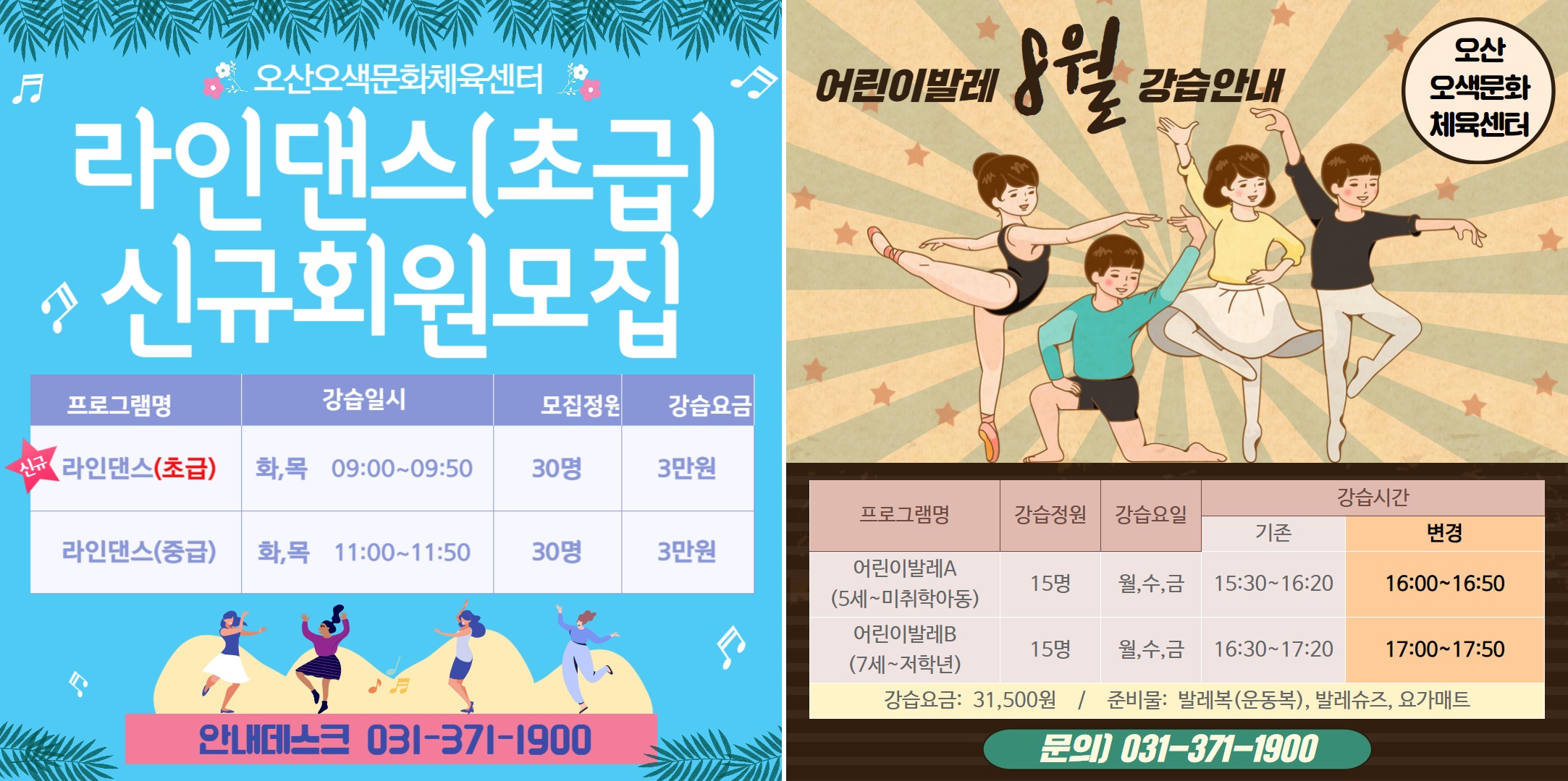 <오산오색문화체육센터 8월 라인댄스 및 어린이발레 강좌 안내>