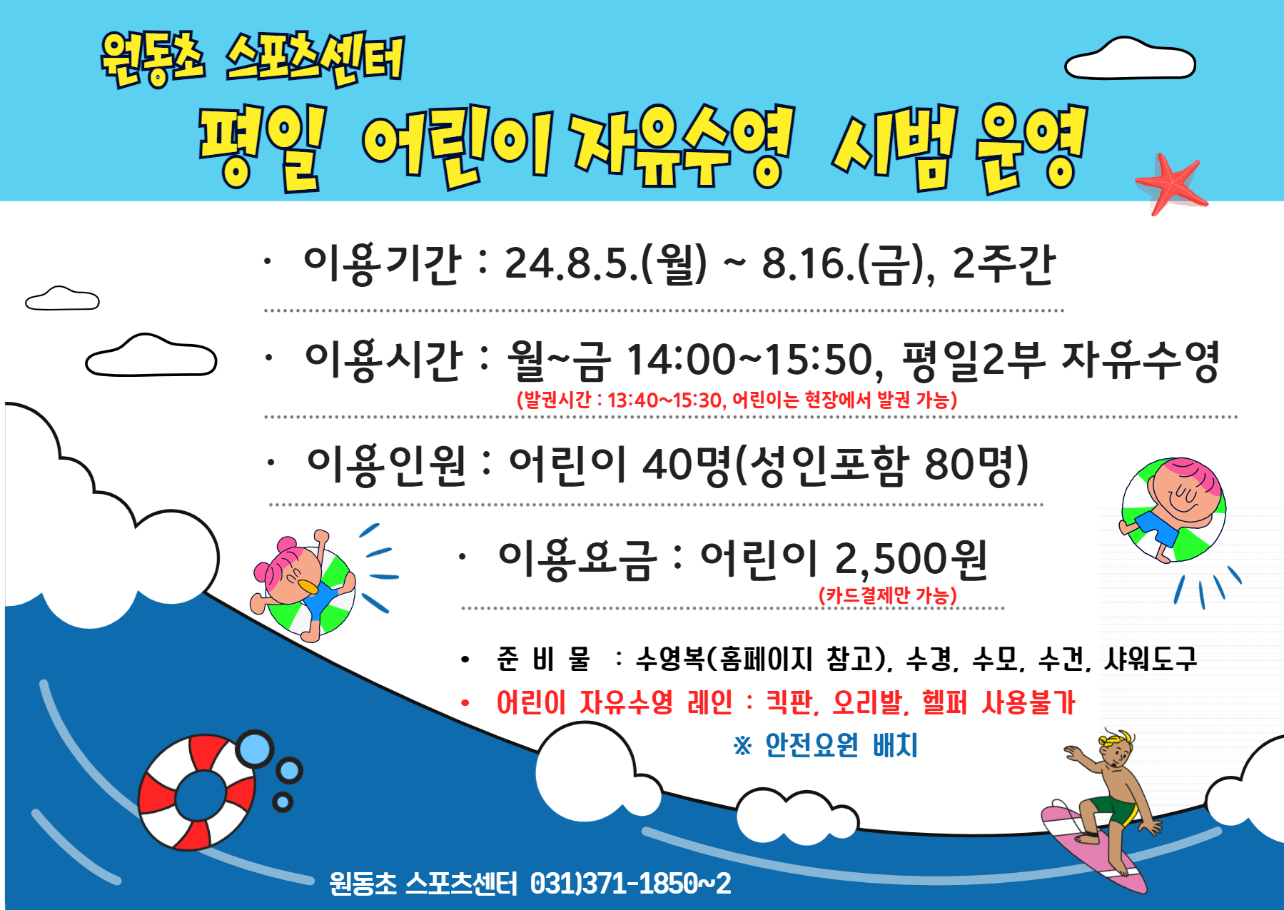 원동초 스포츠센터 [원동] 평일 어린이 자유수영 시범운영