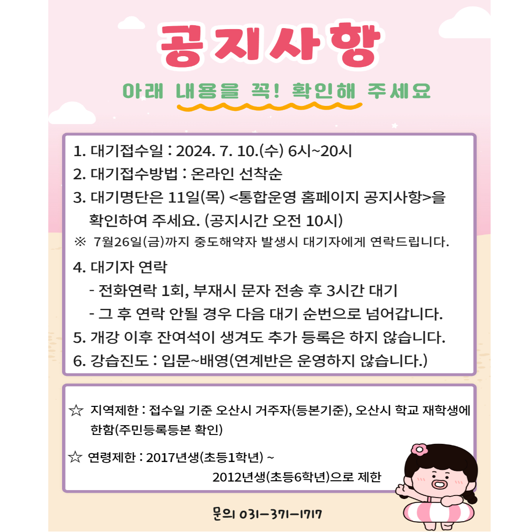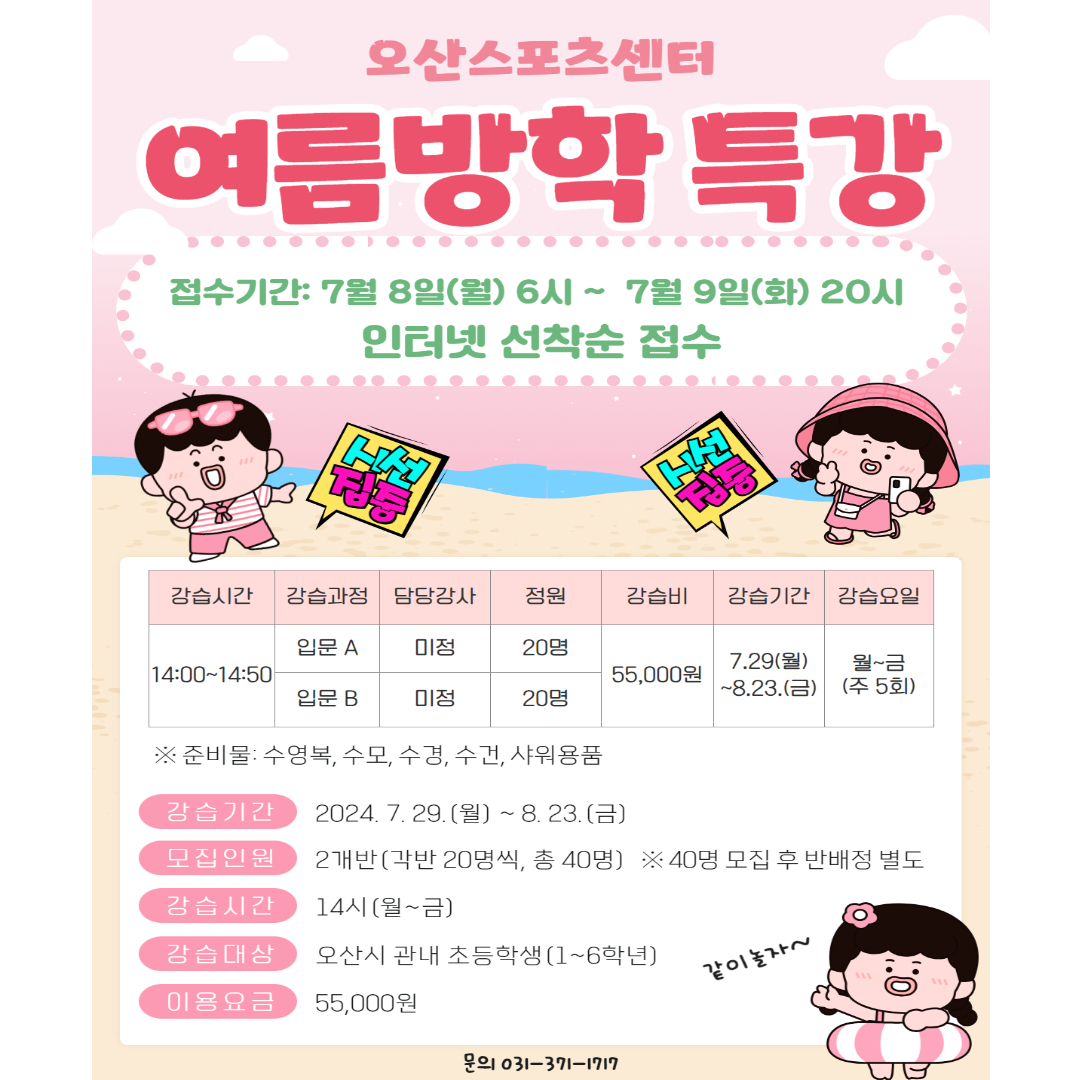 오산스포츠센터 2024년 오산스포츠센터 여름방학 특강 개설 작성자 osansisul03 등록일자 2024년 6월 27일 13시 18분 59초 조회 1,611 제목을 입력하세요 1.jpg [ Size : 591.88KB , Down : 2,072 ] 미리보기 다운로드 제목을 입력하세요 2.jpg [ Size : 403.99KB , Down : 2,057 ] 미리보기 다운로드 목록보기