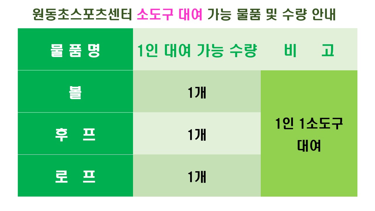 원동초 스포츠센터 원동초스포츠센터 어린이회원 소도구 무료 대여서비스