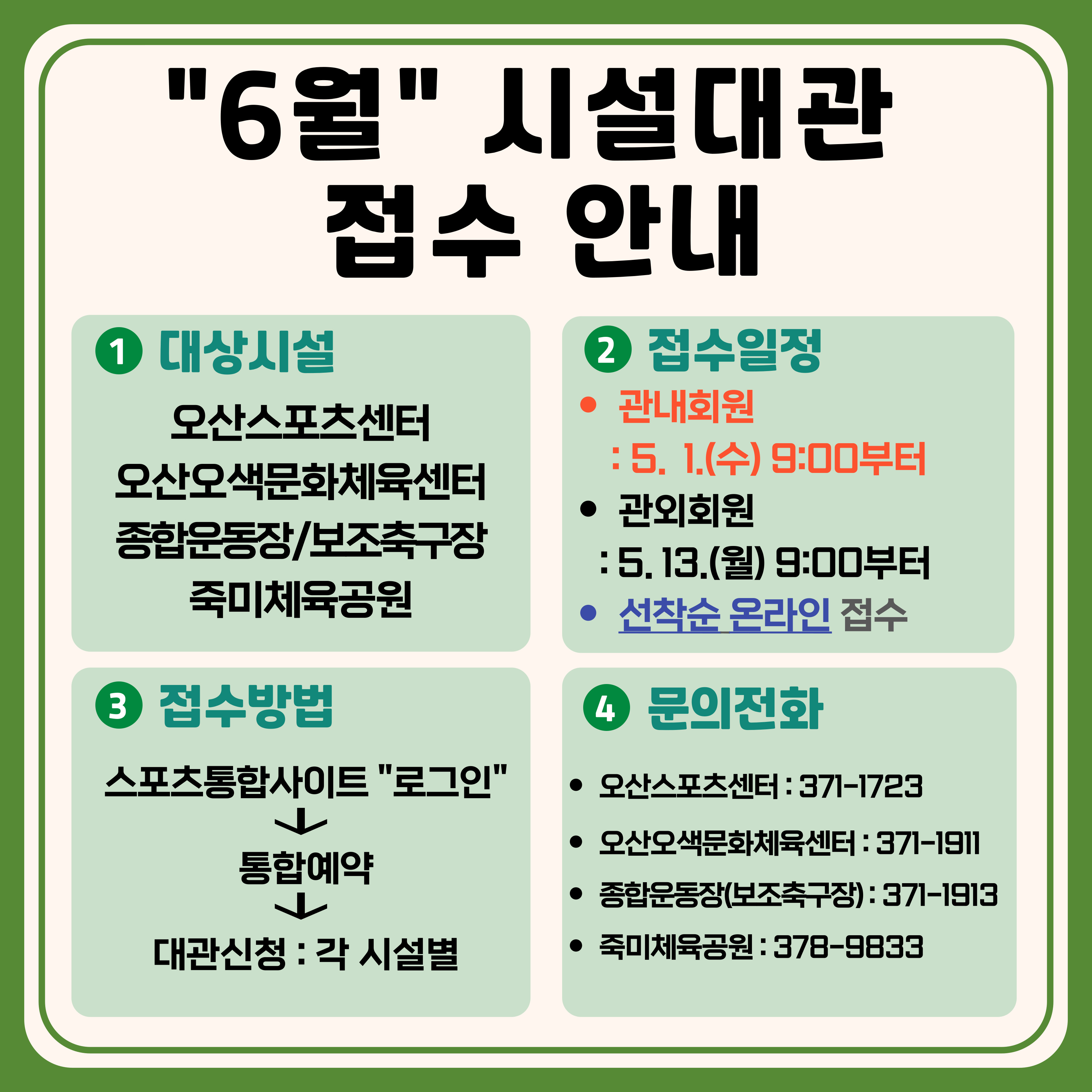 - 6월중 오산시 행사 및 체육경기 우선사용현황