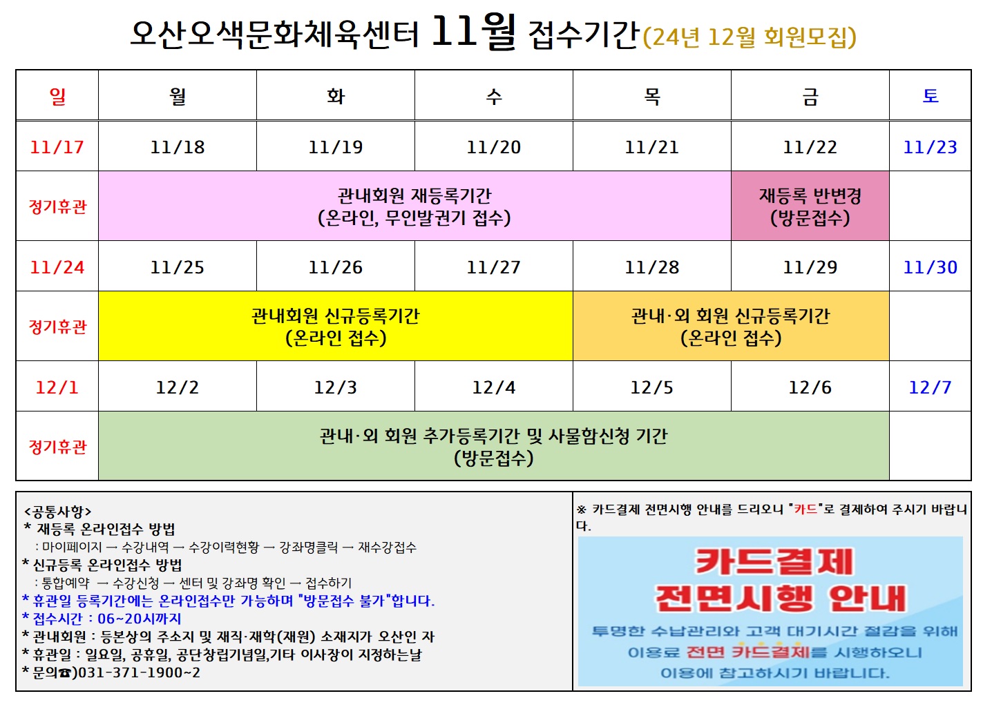 오색문화체육센터 [오색문화] 11월 접수기간(2024.12월 강좌) 작성자 osansisul04 등록일자 2024년 11월 6일 15시 55분 5초 조회 948 . 오색_11월접수기간(수정).jpg [ Size : 334.63KB , Down : 1,107 ] 미리보기 다운로드 목록보기