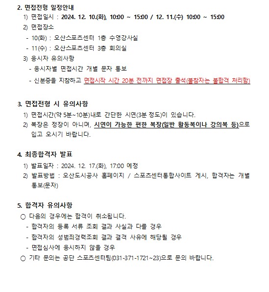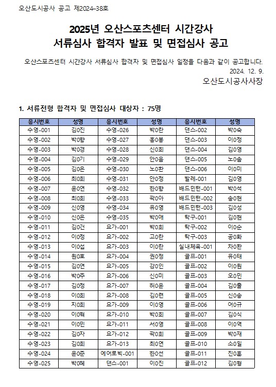 오산스포츠센터 오산스포츠센터 2025년도 시간강사 위촉 서류심사 합격자 발표 및 면접심사 공고 작성자 osansisul03 등록일자 2024년 12월 9일 19시 18분 27초 조회 716 스크린샷 2024-12-09 191455.jpg [ Size : 145.6KB , Down : 1,141 ] 미리보기 다운로드 스크린샷 2024-12-09 191530.jpg [ Size : 76.21KB , Down : 1,116 ] 미리보기 다운로드 목록보기